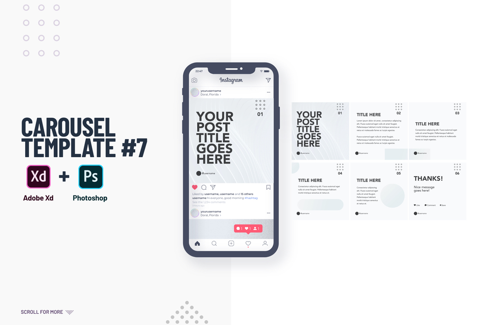 120+ Instagram Carousel Templates - Adobe Xd + Photoshop (120 Slides)